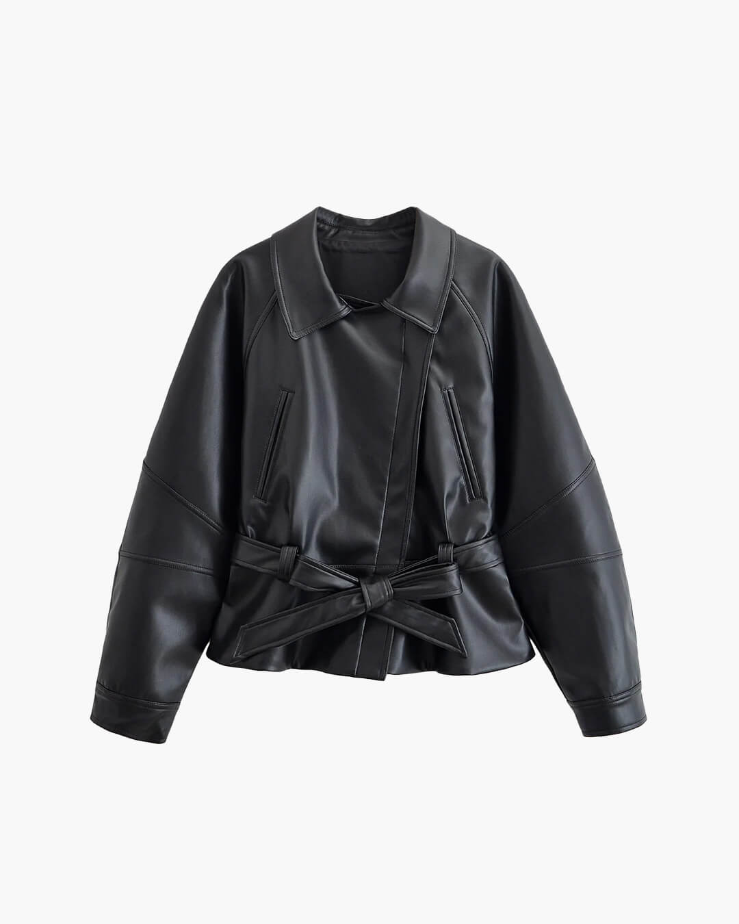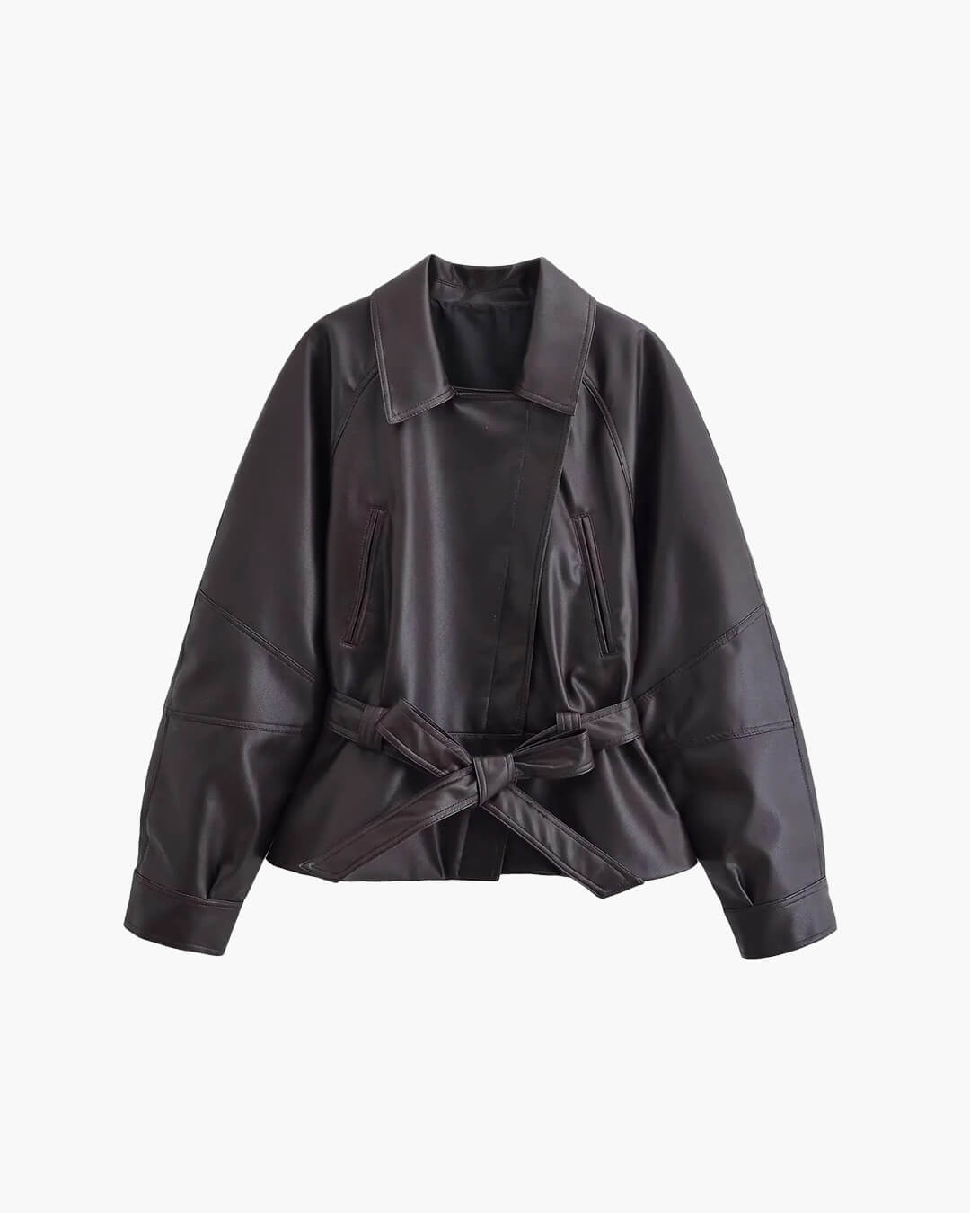 Redefine your outerwear collection with the Maggie Faux Leather Motorcycle Jacket, a high-fashion hybrid of the classic trench and the edgy biker jacket. This isn’t just a standard layer; it features a sophisticated lapel and a trendy short-length cut that accentuates your silhouette. Crafted from premium, high-quality faux leather, it offers a luxurious "quiet luxury" aesthetic that transitions effortlessly from professional city commutes to high-impact evening events. The included adjustable belt allows for a customized, belted fit, providing a crisp, coordinated look that balances structured warmth with an editorial flair. Whether you’re layering for a breezy spring morning or a cool autumn night, this versatile black coat is the ultimate statement piece for a polished, "put-together" wardrobe.
