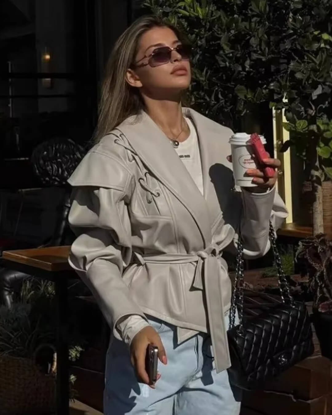 Gianna elegantní plášťová bunda s vysokým límcem a páskem