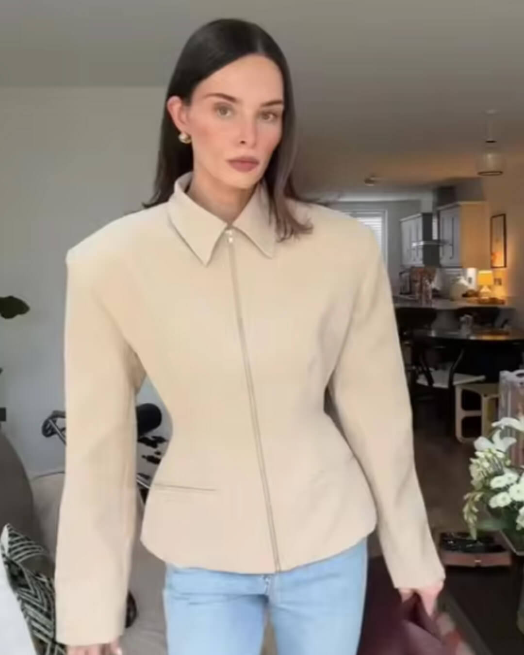 Opgrader din garderobe med denne strukturerede Hazeline Zip-Up Cinched Waist Blazer, designet til at give en elegant, taljedefineret silhuet med moderne kant. Med klassisk reverskrave og strømlinet pasform kombinerer denne alsidige style poleret tailoring med komfort til hverdagen. Det lette, men strukturerede stof gør den ideel til lag-på-lag i forår og efterår, uanset om du styler den til kontoret, smart-casual eller aftenbrug. Den flatterende talje fremhæver din figur og giver samtidig bevægelsesfrihed. Brug den med figursyede bukser, denim eller nederdele for et raffineret look, der nemt går fra dag til aften.