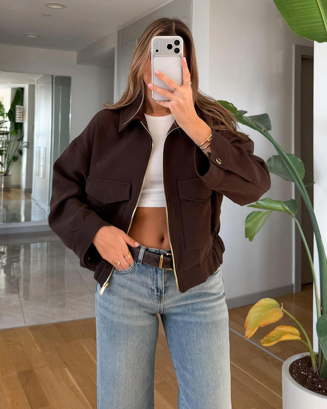 Renueva tu armario de temporada con la Chaqueta Zoey Zip-Up Pocket, un básico versátil diseñado para adaptarse fácilmente a las temperaturas cambiantes del otoño y la primavera. Combinando la practicidad de un diseño inspirado en la utilidad con una estética limpia y moderna, esta chaqueta está pensada para la mujer activa. El tejido ligero pero resistente ofrece la capa perfecta para las mañanas frescas y las noches templadas, asegurando comodidad sin volumen.