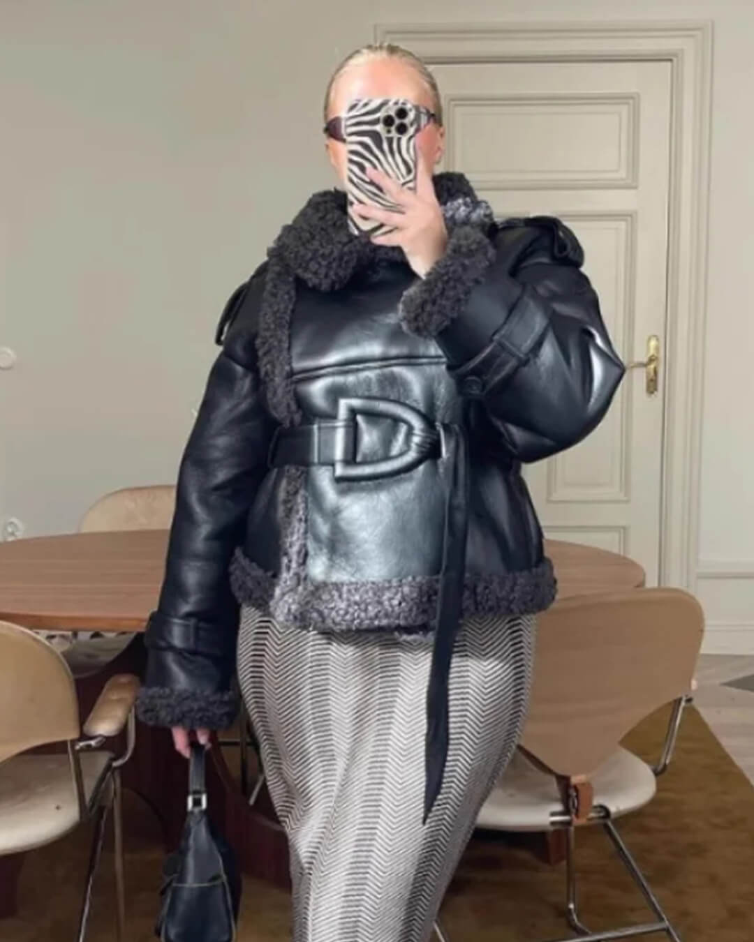 Elora jakna od umjetnog ovčjeg krzna i kože