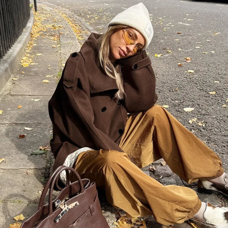 Elevate your wardrobe with this chic and fashionable woolen trench coat designed for the modern woman. Perfect for the spring season, this coat features a stand collar and a double-breasted design, ensuring both style and comfort.