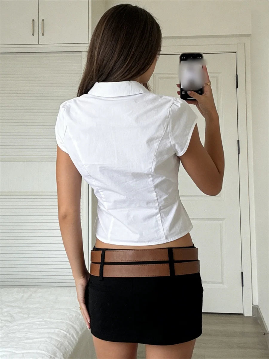 Ariana Cropped Blouse met Knoopsluiting voor Dames