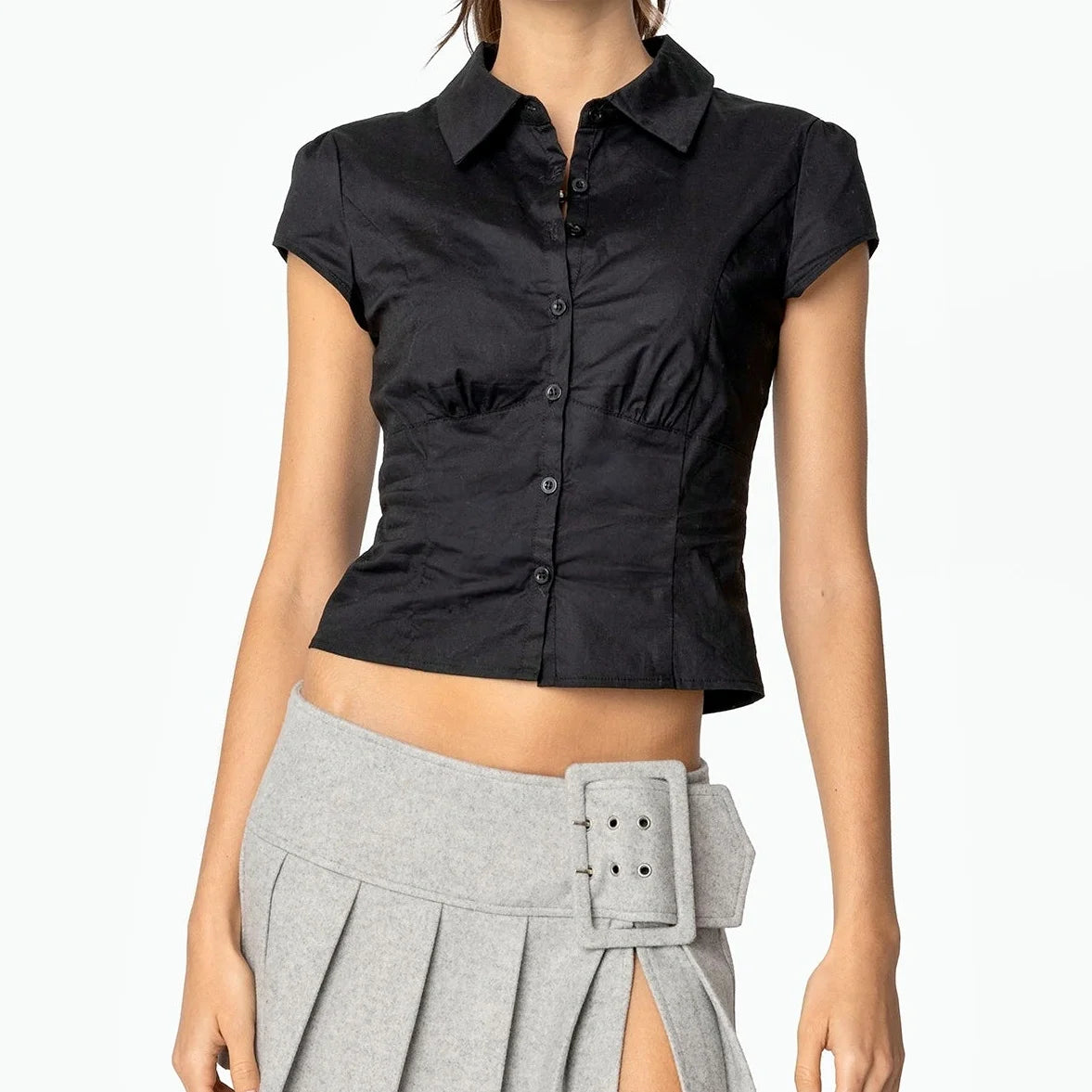 De perfecte cropped blouse met knoopsluiting die moeiteloos cool toevoegt aan elke outfit. Dit is niet zomaar een basic—het wordt jouw nieuwe favoriet die elke look transformeert van gewoon naar streetstyle-waardig.