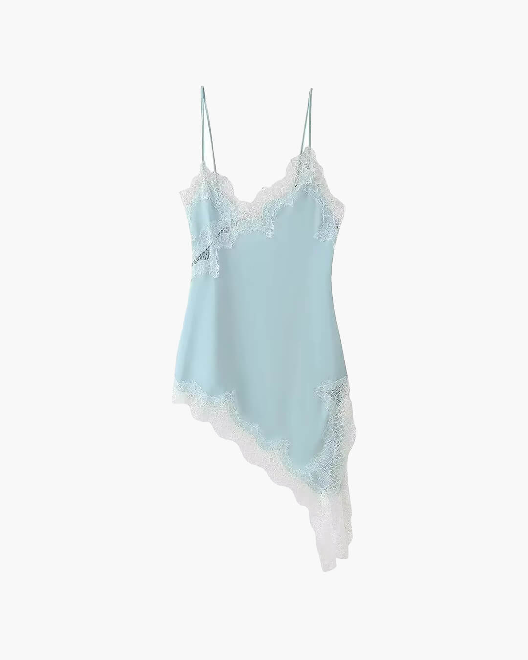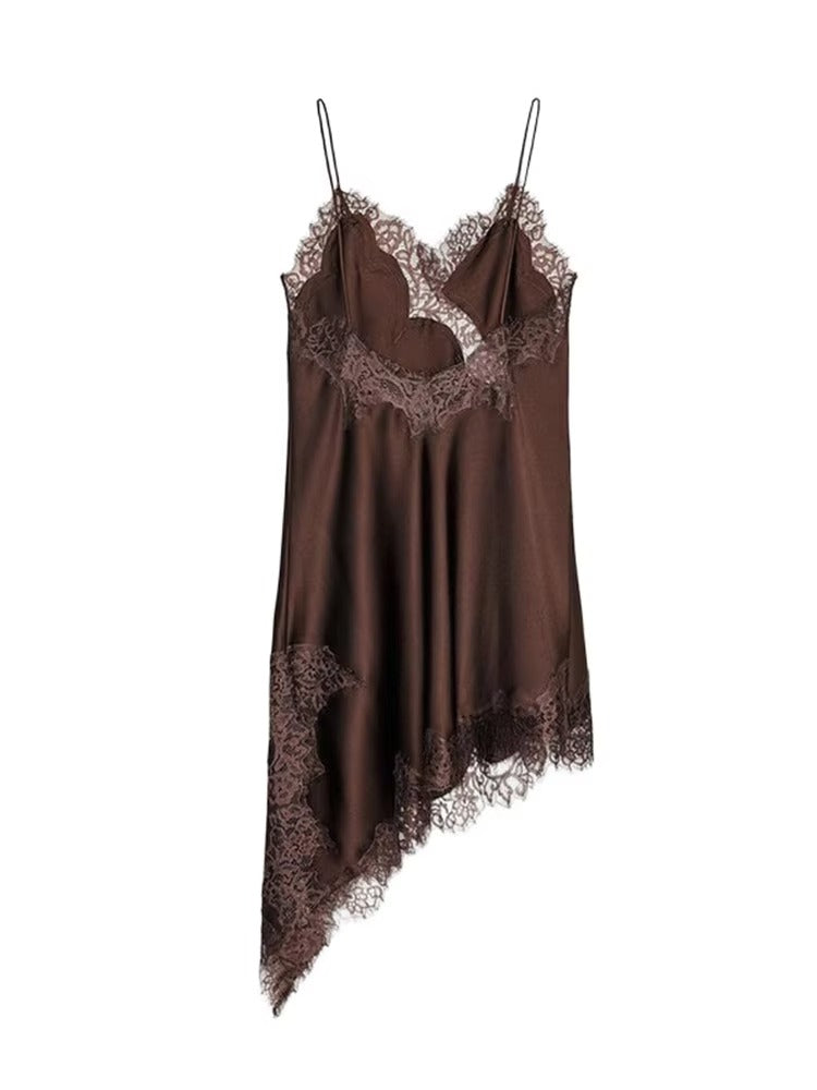 Asymetryczna satynowa sukienka midi z koronką Arah