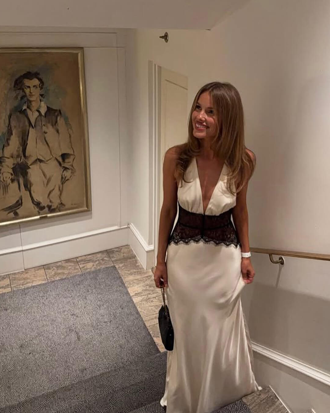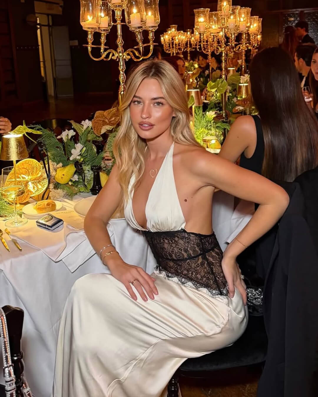 Satynowa sukienka Astrid z koronką, odkrytymi plecami i wąską talią