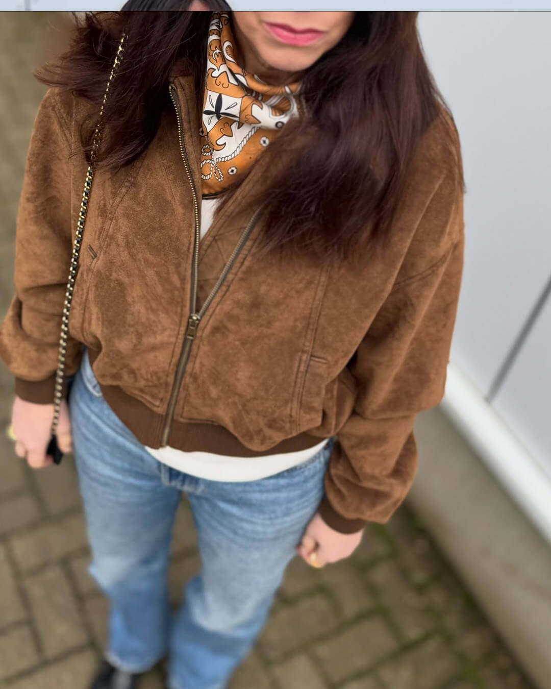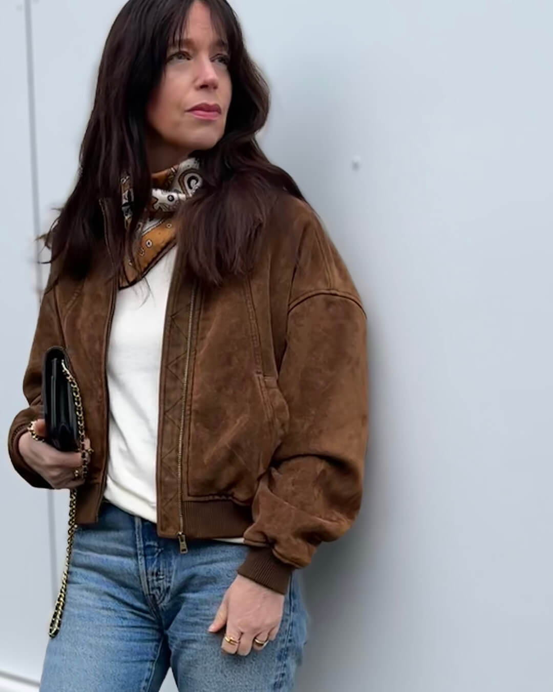 Răsfață-te cu îmbinarea desăvârșită dintre eleganța europeană și stilul urban cu jacheta Heather din imitație de piele întoarsă. Acest palton scurt, deosebit de rafinat, este creat să fie stratul tău preferat, trecând cu ușurință de la diminețile răcoroase de primăvară la serile plăcute de vară. Realizat cu o finisare catifelată, într-o nuanță versatilă de kaki, oferă o senzație plăcută la atingere, la fel de atrăgătoare precum aspectul său. Gulerul cu rever inspirat din stilul vechi și nasturii delicați adaugă o notă de eleganță clasică, în timp ce închiderea modernă cu fermoar și croiala largă asigură un aspect contemporan și confortabil. Fie că ești pasionată de moda străzii sau vrei să-ți îmbogățești garderoba zilnică, această jachetă este piesa ușoară perfectă pentru femeia modernă. Bucură-te de versatilitate sezonieră și detalii rafinate într-o piesă chic, de nelipsit.