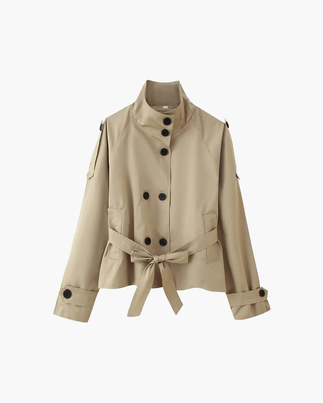 Kara kratek trenč s stoječim ovratnikom in pasom